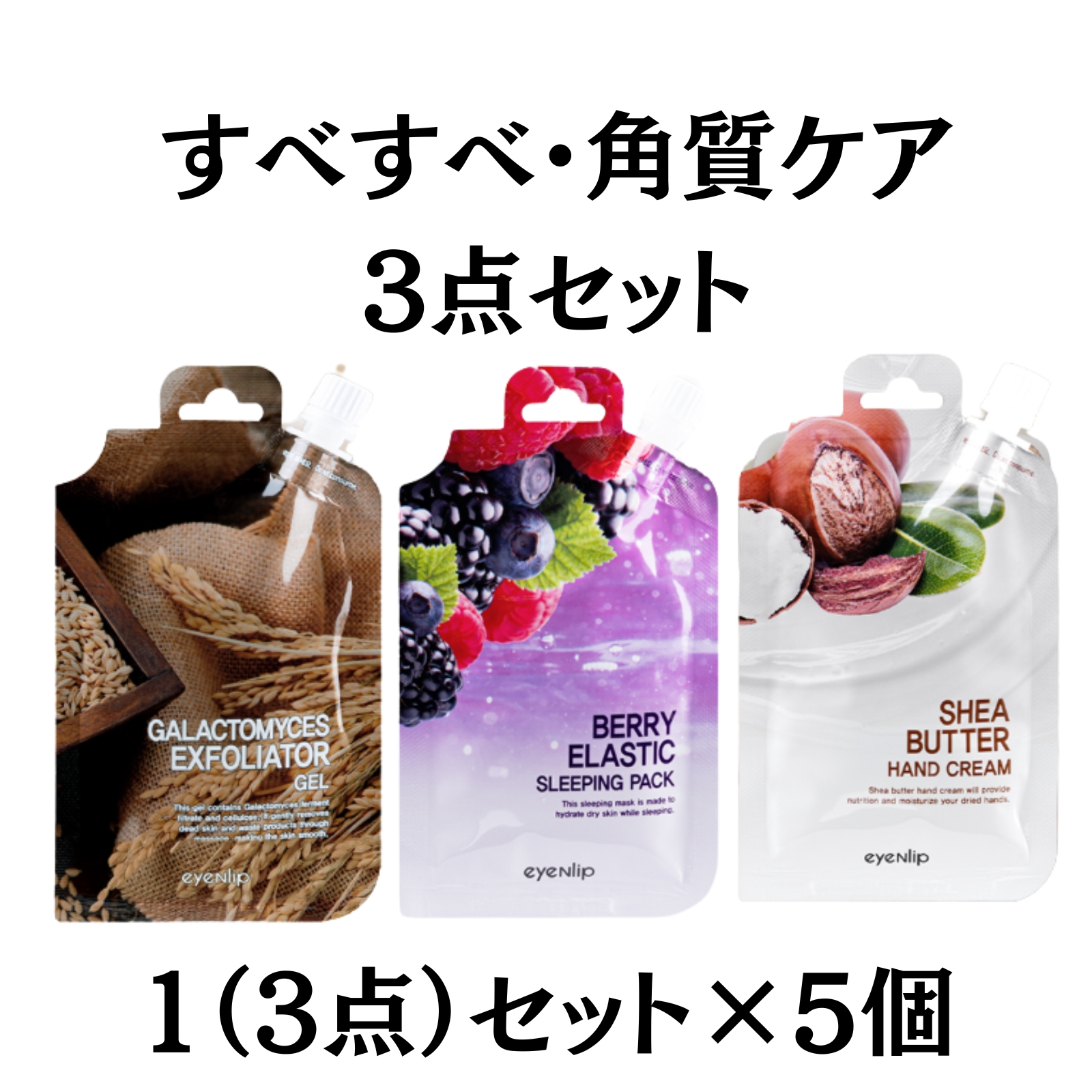 角質ケア・保湿ケア 3点セット|ピーリングジェル・ハンドクリーム・スリーピングパック|すべすべ肌・手元保湿|25g 韓国コスメeyeNlip